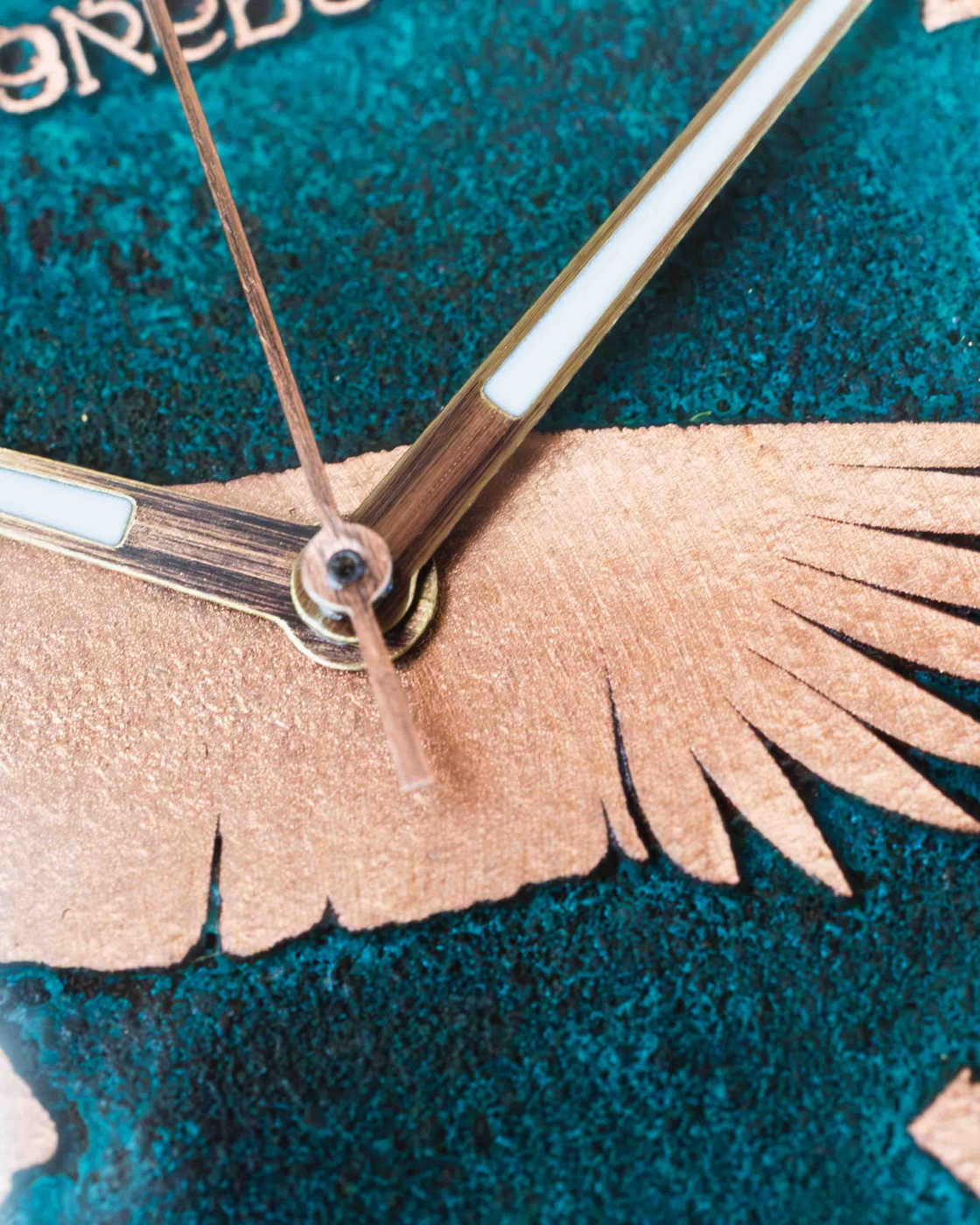 Cuando el cobre alcanza el nivel de pátina deseado, se sella. Ese sellado lo vuelve impermeable en el tiempo, deteniendo el proceso de cambio. En otras palabras: el reloj conserva ese “momento perfecto” del cobre.